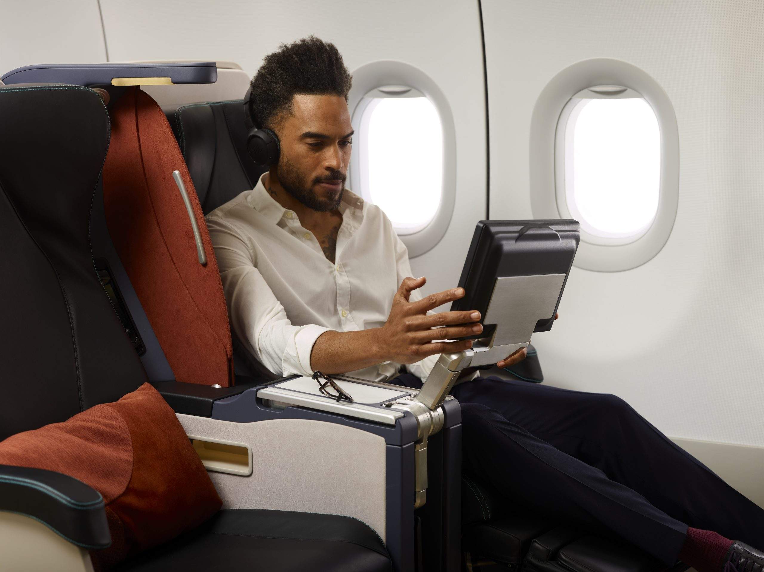 Espace personnel accru et ergonomie renforcée – Une structure repensée offre plus de place pour s’étirer, se détendre et travailler, garantissant une expérience fluide sur les vols long-courriers.